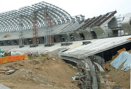 臺灣當(dāng)局債務(wù)高達(dá)4.6兆新臺幣,其中很多是以特別預(yù)算編列的公共建設(shè)。圖為高雄世運主場館的興建狀況。(臺灣《中國時報》圖片)
