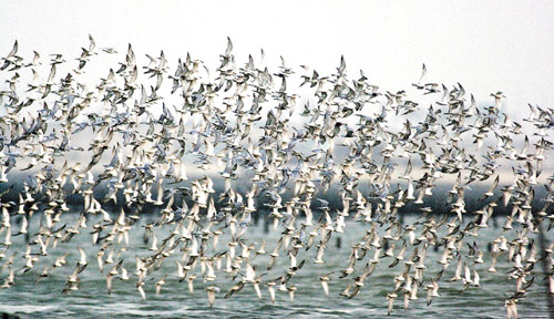 中國臺灣網(wǎng)3月29日消息 臺南縣北門鄉(xiāng)井仔腳鹽田外的舄湖,聚集3萬多只冬候鳥黑腹燕鷗群集飛舞,令賞鳥人士驚艷,游客紛至沓來。繼美國國家地理頻道完成拍攝之后,云嘉南風(fēng)景區(qū)管理處也將結(jié)合“旅行臺灣年”活動,向國際介紹鹽村珍貴的臺灣生態(tài)奇觀。