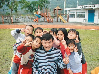 吳明億飛行103公里,降落地花蓮見晴小學(xué)學(xué)生的熱情笑容是最大的獎勵。(臺灣《聯(lián)合報》圖片)
