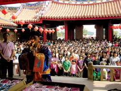 配合大甲媽祖出巡,大肚鄉(xiāng)公所決定在書院內(nèi)舉辦考生祈;顒(dòng)。昨天(5日)共有2500多人報(bào)名參加,書院內(nèi)外擠滿了前來祈福的人,大家一致合掌向文昌帝君說出心愿,盼求得好考運(yùn),能夠一舉考上理想的學(xué)校。