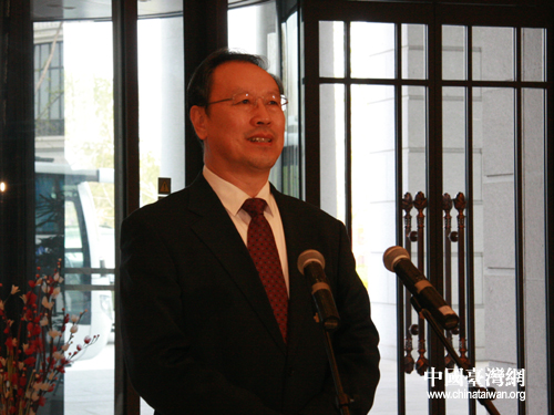 中國(guó)臺(tái)灣網(wǎng)4月9日北京消息 今天,全國(guó)政協(xié)副主席、中央統(tǒng)戰(zhàn)部部長(zhǎng)杜青林在北京會(huì)見(jiàn)了參加中國(guó)和平統(tǒng)一促進(jìn)會(huì)第七屆海外統(tǒng)促會(huì)會(huì)長(zhǎng)會(huì)的全體人員。