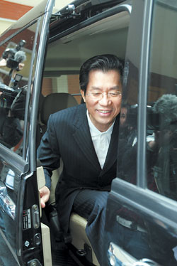 民進(jìn)黨秘書長李應(yīng)元11日參加該黨“立法院”黨團(tuán)大會,會后低調(diào)的搭車離去。(臺灣《中國時報》圖片)