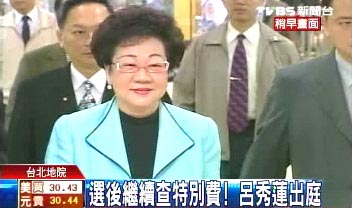中國臺灣網(wǎng)4月14日消息 據(jù)臺灣TVBS電視臺報道,臺灣地區(qū)副領(lǐng)導(dǎo)人呂秀蓮因?yàn)椤疤貏e費(fèi)案”遭起訴,今天法院重新審理,這也是該案在臺灣地區(qū)領(lǐng)導(dǎo)人選舉后第一次開庭。