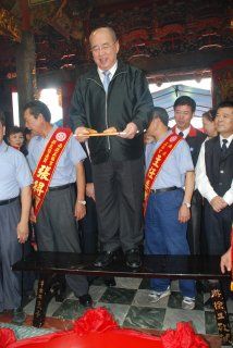 吳伯雄今天上午到桃園縣蘆竹鄉(xiāng)五福宮參加一場廟會,并為活動揭幕。(臺灣“中廣新聞”圖片)