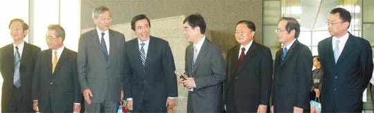 馬英九昨天由內(nèi)定“行政院秘書長”薛香川、“經(jīng)濟部長”尹啟銘陪同,前往內(nèi)湖科技園區(qū),和包括光寶科技董事長宋恭源、華碩董事長施崇棠、宏碁董事長王振堂、華邦電子董事長焦佑鈞、神達董事長苗豐強、臺達電董事長鄭崇華、友達董事長李焜耀、仁寶計算機董事長許勝雄座談。八大集團的產(chǎn)值超過兩兆新臺幣,馬英九相當重視,原本計劃談一個小時,最后談了近兩小時。