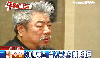 中國臺灣網(wǎng)5月14日消息 據(jù)臺灣TVBS電視臺報道,臺灣檢調(diào)部門偵辦臺當(dāng)局“金援弊案”取得重大進(jìn)展,已經(jīng)被收押的中間人吳思材,雖然表示沒拿到半毛錢,但根據(jù)洗錢調(diào)查資料,早在去年年初,吳思材就從新加坡賬戶,匯了300萬美元到其前妻的臺灣賬戶中。