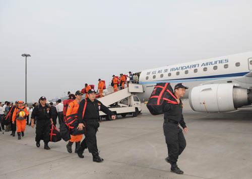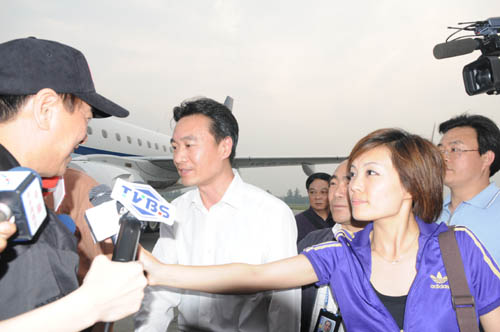 國臺辦和四川省臺辦領(lǐng)導(dǎo)到機(jī)場迎接臺灣救援隊(duì)。
