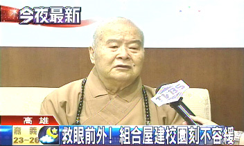 中國臺灣網(wǎng)5月18日消息 四川省汶川強震造成重大傷亡,臺灣佛光會救援隊進入重災(zāi)區(qū)青川木魚鎮(zhèn)救援。佛光會總會長星云法師昨天晚上接受臺灣“中央社”訪問表示,將發(fā)動佛光會及民眾協(xié)助災(zāi)區(qū)學(xué)校重建;在災(zāi)區(qū)設(shè)置心靈輔導(dǎo)站,長期輔導(dǎo)災(zāi)民;募集組合屋解決災(zāi)民居住問題。