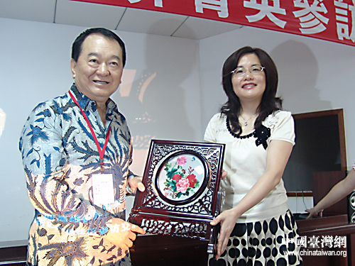 李厚業(yè)團(tuán)長(zhǎng)代表參訪團(tuán)接受禮物(攝影 董潔)