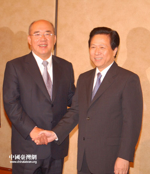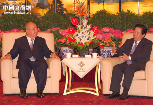 5月26日,中共江蘇省委書記梁保華在南京會(huì)見中國(guó)國(guó)民黨主席吳伯雄。 中國(guó)臺(tái)灣網(wǎng)記者田云鵬攝