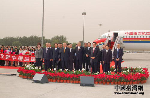 中國國民黨大陸訪問團(tuán)一行,27日下午抵達(dá)北京首都機(jī)場。中臺(tái)辦主任陳云林及北京市委副書記王安順前往迎接。圖為歡迎儀式現(xiàn)場。中國臺(tái)灣網(wǎng)記者田云鵬攝