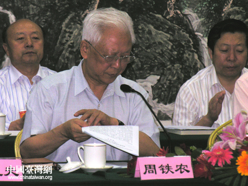 周鐵農(nóng)主席表示,民革全黨要在中央的統(tǒng)一部署下,為構(gòu)建兩岸關(guān)系和平發(fā)展框架,促進祖國和平統(tǒng)一大業(yè),加倍努力,做出新的更大的貢獻。