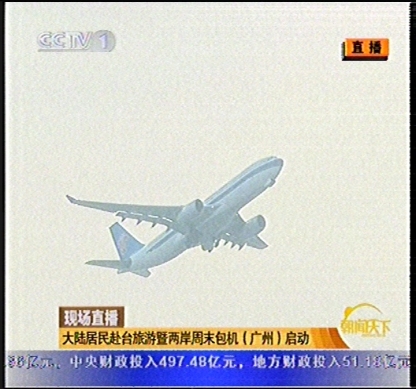 中國(guó)臺(tái)灣網(wǎng)7月4日消息 據(jù)中央電視臺(tái)報(bào)道,兩岸周末包機(jī)廣州首發(fā)包機(jī),已于北京時(shí)間6時(shí)30分許起飛,將于北京時(shí)間8點(diǎn)10分抵達(dá)臺(tái)北桃園機(jī)場(chǎng)。據(jù)了解,廣州首發(fā)包機(jī)由南方航空公司總經(jīng)理劉紹勇?lián)螜C(jī)長(zhǎng)。(沈鵬)