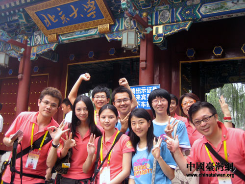 中國(guó)臺(tái)灣網(wǎng)7月11日北京消息 “北京歡迎你,為你開天辟地,流動(dòng)中的魅力充滿著朝氣;北京歡迎你,在太陽(yáng)下分享呼吸,在黃土地刷新成績(jī)……”2008臺(tái)胞青年夏令營(yíng)北京分營(yíng)團(tuán)員今天走進(jìn)北京大學(xué),在北大學(xué)生的帶領(lǐng)下,營(yíng)員們游覽了包含人文精神的未名湖、博雅塔。相同的語(yǔ)言、相似的學(xué)習(xí)經(jīng)歷、相近的學(xué)習(xí)愛好,讓兩岸年輕人很快就消除了彼此之間的陌生感,像老朋友一樣聊得火熱。