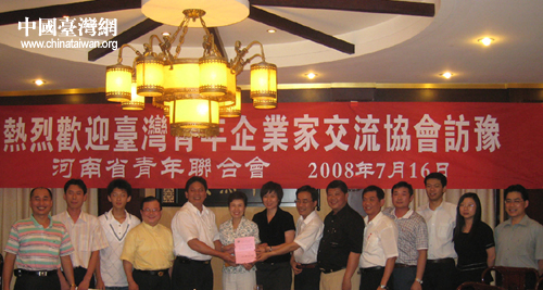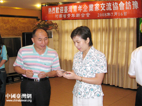 該參訪團成員與鄭州部分青年企業(yè)家代表就豫臺青年企業(yè)家如何加強交流、進行互訪及兩地青少年利用暑期進行交流活動等事宜,進行了廣泛交流和深入探討。