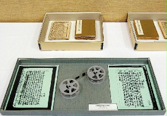 美國斯坦福大學(xué)胡佛研究院18日公開蔣介石1946到1955年日記。圖為胡佛展出之收藏之蔣介石日記原本(圖上)及公開之微卷和影印本(圖下)!。ㄅ_(tái)灣《聯(lián)合晚報(bào)》圖片)