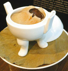 臺北“故宮晶華”餐廳筵席中的弦紋鼎,就是一道魚翅料理,島內(nèi)外動物保護團體指責“故宮”把魚翅料理當寶,破壞動物保護形象。臺灣《聯(lián)合報》資料照片