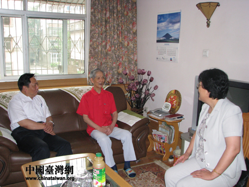 全國(guó)臺(tái)聯(lián)梁國(guó)揚(yáng)會(huì)長(zhǎng)與河南省臺(tái)聯(lián)會(huì)長(zhǎng)郭晴看望在鄭老臺(tái)胞。(圖片來(lái)源:河南省臺(tái)辦)