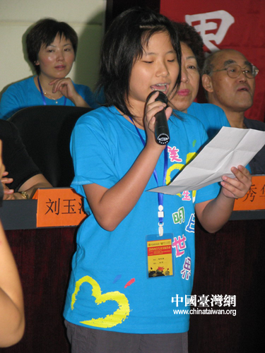 臺(tái)灣獲獎(jiǎng)小朋友代表候凱馨發(fā)言