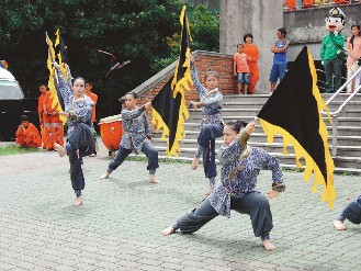 臺(tái)灣新竹縣“義民節(jié)”將于8月16日熱鬧登場,新竹客家舞蹈團(tuán)昨天演出黑旗舞“義民爺”,預(yù)告精彩活動(dòng)。圖片來源:臺(tái)灣《聯(lián)合報(bào)》。