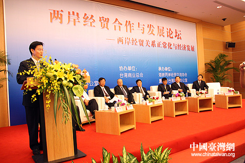 “第三屆兩岸經(jīng)貿(mào)合作與發(fā)展論壇——兩岸經(jīng)貿(mào)關(guān)系正;c經(jīng)濟發(fā)展”是在廈門舉行的中國國際投資貿(mào)易洽談會的配套活動之一,論壇邀請了兩岸多位學(xué)者和相關(guān)領(lǐng)域從業(yè)精英發(fā)表主題演講,就兩岸直航、陸資赴臺、金融合作以及經(jīng)貿(mào)爭端等問題進行了深入探討。(特約記者 徐麗麟)