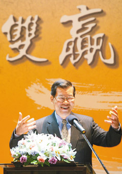 蕭萬(wàn)長(zhǎng)昨晚參加臺(tái)商中秋聯(lián)誼活動(dòng),談到經(jīng)濟(jì)話題興致很高。