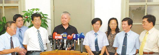 臺“最高檢察署”特偵組全體檢察官昨天罕見地一字排開舉行記者會,宣示偵辦中的公務機要費案及陳水扁家庭島外洗錢案,年底前可望偵查終結(jié),給外界交代。檢察官表示,“案子如果辦不出來,愿下臺一鞠躬”,離開特偵組。臺灣《聯(lián)合報》圖