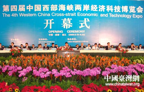 中國臺灣網(wǎng)9月19日成都消息 今天上午,四川省在“5·12”汶川大地震后,舉辦的第一個大規(guī)模涉臺經(jīng)貿(mào)活動——第四屆中國西部海峽兩岸經(jīng)濟(jì)科技博覽會(簡稱“海博會”),在成都市溫江區(qū)成都花博國際會展中心開幕。來自海峽兩岸的1500多名經(jīng)貿(mào)界人士歡聚一堂,上海、深圳、東莞、蘇州等沿海主要臺商聚集區(qū)的臺資企業(yè)協(xié)會更是率當(dāng)?shù)仉娮、機(jī)械等行業(yè)客商組團(tuán)參會。