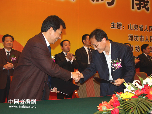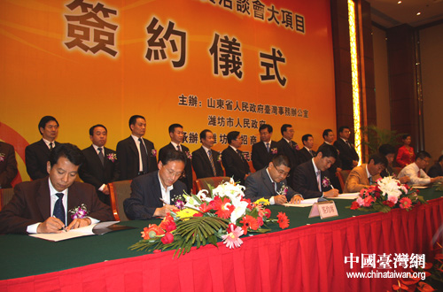 中國臺灣網9月27日濰坊消息 “第十四屆魯臺經貿洽談會大項目簽約儀式”于昨天下午在濰坊舉行。山東省有關部門、濰坊市政府負責人及簽約項目雙方代表參加儀式。
