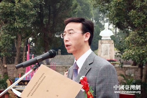 臺(tái)灣湖北文獻(xiàn)社社長汪大華先生在祭拜儀式上致辭(攝影:鐘寶華)