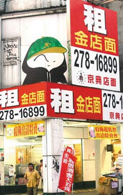 經(jīng)濟不景氣,臺灣滿街都是待租的店面。國際原物料價格滑落,但島內(nèi)的民生物價卻沒降,買氣低迷沒人敢開店做生意。來源:臺灣《聯(lián)合報》