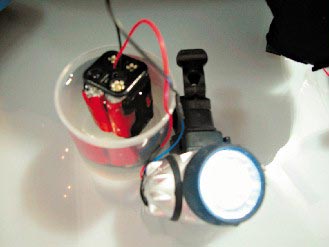 廖重賓說,很多小學(xué)生做過蘋果發(fā)電的實(shí)驗(yàn),就是利用有機(jī)質(zhì)發(fā)電的原理,但電流都太低。他研發(fā)的葉綠素純有機(jī)電池是目前全球最大電流的有機(jī)電池,電能是日本“水電池”的一倍。而且用到?jīng)]電時(shí),沾水10秒鐘就可回復(fù)電力重復(fù)使用。不只沾水就可充電,連茶、可樂、咖啡、果汁等只要是水溶液都可以。