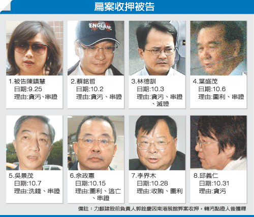 因涉及陳水扁家族弊案被羈押的8人 來(lái)源:聯(lián)合報(bào)