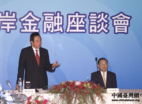 兩岸金融座談會今天上午在臺北圓山飯店舉行,海協(xié)會會長陳云林與;鶗麻L江丙坤出席。中國臺灣網(wǎng) 田云鵬攝