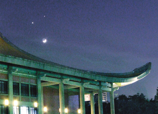 臺灣昨晚的夜空很可愛,雙星伴月如同一張可愛的笑臉。