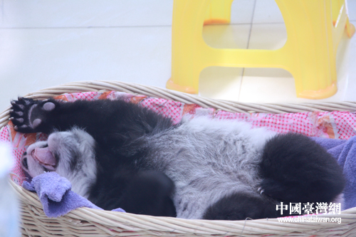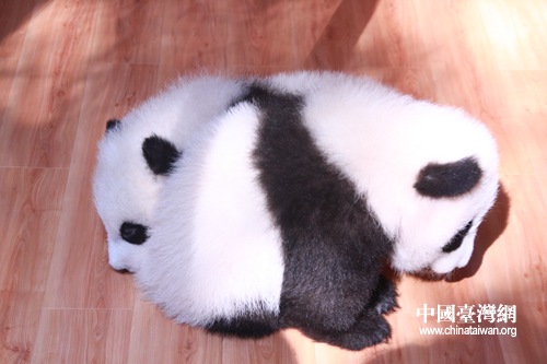 哈哈,這是“幼兒園”里的一對雙胞胎,三四個月大。“團團”、“圓圓”小的時候應(yīng)該也這樣吧。
