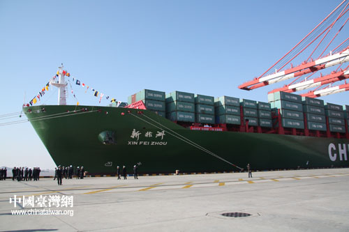 昨天上午,兩岸海運直航上海航點首航儀式在上海洋山港舉行。作為洋山港首日海運直航的中海集團的“新非洲”輪,在儀式后從上海洋山港出發(fā)直航臺灣,并于今天中午時分順利抵達高雄港。