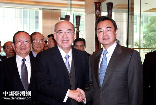 中共中央臺(tái)辦主任王毅迎接中國國民黨主席吳伯雄一行。中國臺(tái)灣網(wǎng) 李徽 攝