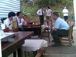 被曝光的臺(tái)特偵組兩位檢察官吳文忠、朱朝亮與陳水扁的合照。圖片:臺(tái)灣“今日新聞”