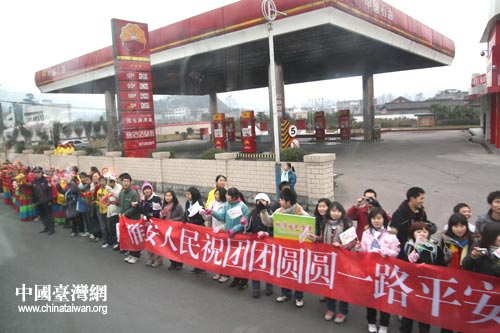 早在儀式開始之前,當(dāng)?shù)卦S多群眾就自發(fā)地來到現(xiàn)場(chǎng),為“團(tuán)團(tuán)”、“圓圓”送行。大家對(duì)兩只大熊貓終能赴臺(tái)感到高興,也很不舍。面對(duì)記者的攝影機(jī),“送親”群眾衷心祝愿“團(tuán)團(tuán)”、“圓圓”幸福平安,兩岸同胞團(tuán)團(tuán)圓圓。
