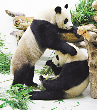 熊貓團(tuán)團(tuán)圓圓昨日入住木柵新家。臺灣聯(lián)合報圖