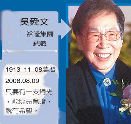 臺灣裕隆集團已故總裁吳舜文(臺灣《聯(lián)合報》圖片)