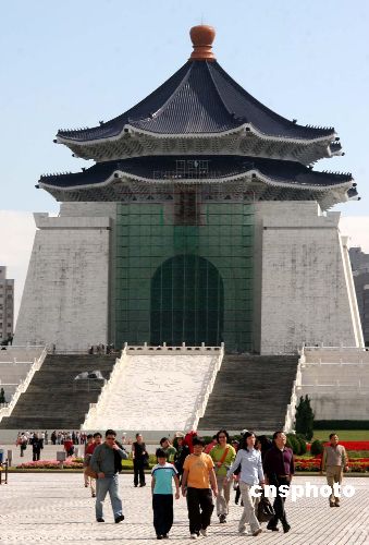 2007年12月10日,因更換牌匾封館多日的臺北“中正紀(jì)念堂”重新對外開放,當(dāng)時主館施工腳手架尚未拆除。來源:中新社