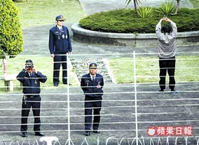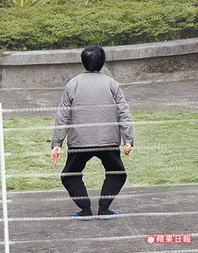 陳水扁昨天放風時,故意背對媒體做體操,看守所管理員也對媒體進行監(jiān)看。來源:臺灣《蘋果日報》