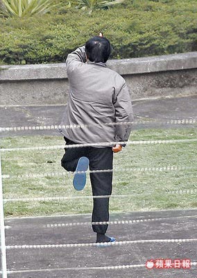 陳水扁放風時做金雞獨立狀。來源:臺灣《蘋果日報》