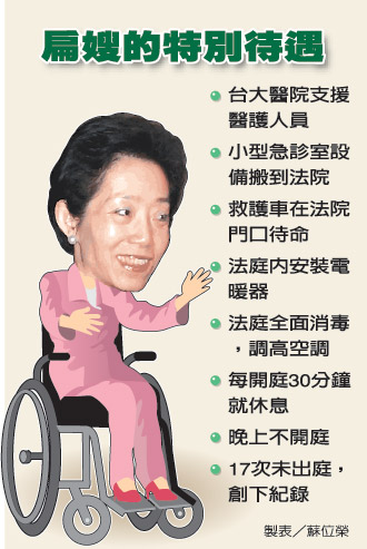 據(jù)臺(tái)媒了解, 2006年12月15日“公務(wù)機(jī)要費(fèi)案”首次開庭,吳淑珍就在法庭上突然昏倒,這是她為了“公務(wù)機(jī)要費(fèi)案”第一次也是到目前為止最后一次出庭。接下來第二次傳喚時(shí)間就在幾天后,吳淑珍這一次早就做好請假準(zhǔn)備,住進(jìn)醫(yī)院,并連第三次一并缺席。