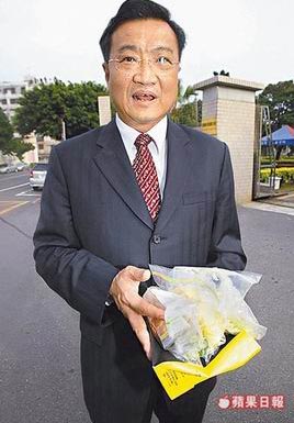 陳水扁辦公室秘書江志銘昨帶吳淑珍為陳水扁準(zhǔn)備的食物前往看守所,但遭退回。來源:臺(tái)灣《蘋果日?qǐng)?bào)》