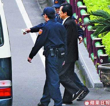 臺(tái)北地方法院昨?qū)徖黻愃馑姘讣,提訊羈押在臺(tái)北看守所的陳水扁。來(lái)源:臺(tái)灣《蘋(píng)果日?qǐng)?bào)》