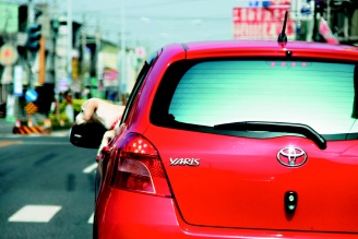 臺灣南投市彰南路前天出現(xiàn)一輛紅色轎車,女司機抱著狗坐在駕駛座,狗兒還探頭車窗外,讓路人以為是狗在開車。來源:臺灣《聯(lián)合報》