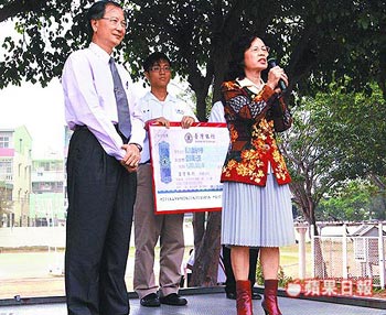 中國臺灣網(wǎng)2月27日消息 據(jù)臺灣《蘋果日報》報道,臺灣一名初中退休老師,昨捐出100萬元(新臺幣,下同)給臺南市私立瀛海中學,做為清寒學生獎學金。她上臺致辭時一度脫稿演出,點名陳水扁,想呼吁陳水扁將海外賬戶金錢匯回臺灣做善事,校長擔心太過政治化,請師生以掌聲中斷她的致辭。